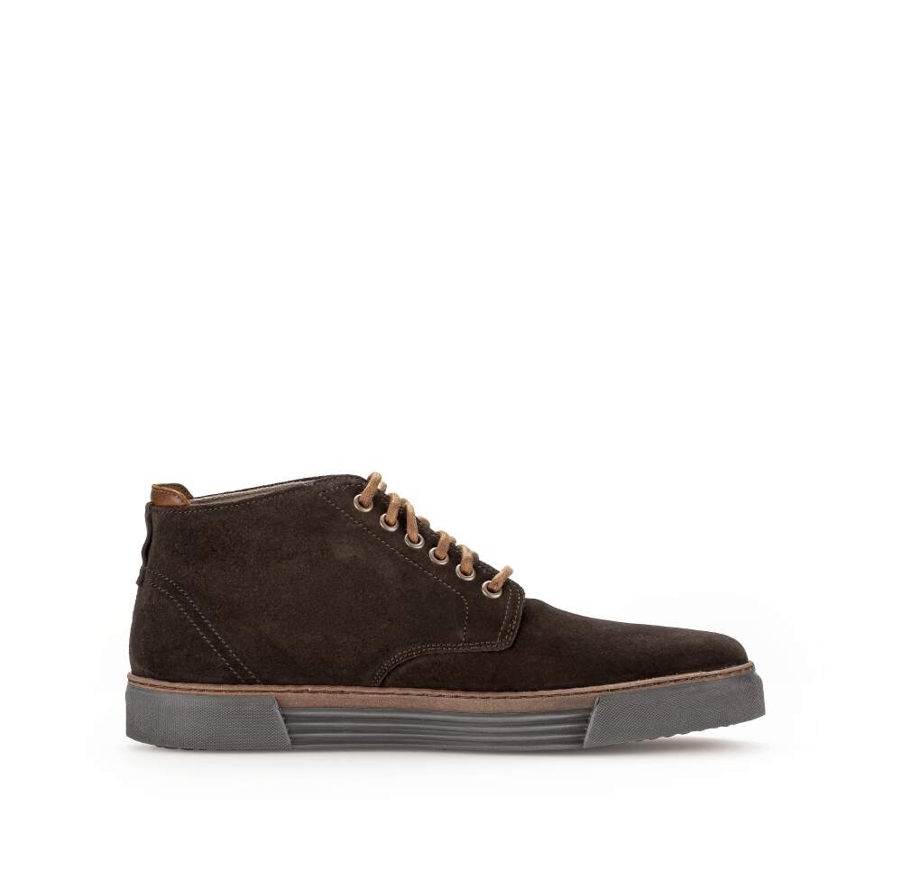 - Leichte, knöchelhohe Stiefel aus Wildleder oder Nubukleder.