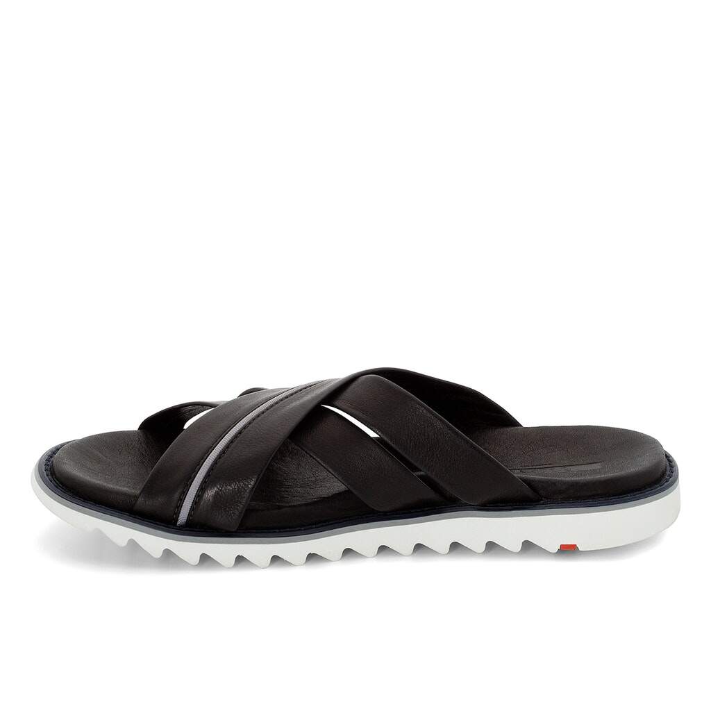 - Pantoletten aus Leder harmonieren hervorragend mit Chinos und einem leichten Leinenhemd.
